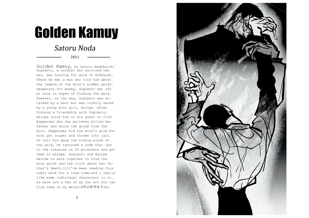 I decided my 4 projects in the PDF. They are: my fanart drawings of the manga Golden Kamuy in 2021; my fanart drawing before 2020 about the manga Hunter x Hunter; my 3D modle exercise about metamorphosis, and my illustrations about a snuffbox in V&A museum.