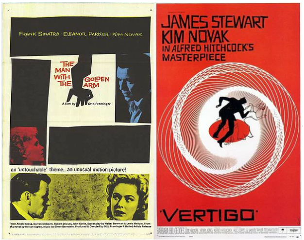 (Picture 5: Bass’ poster designs for The Man with the Golden Arm (1955) and Vertigo (1958))